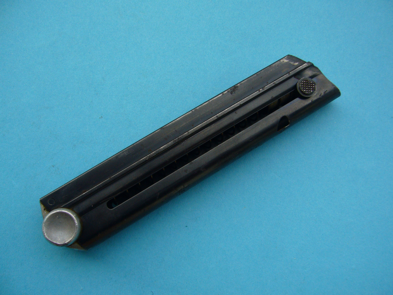 Originales Magazin für Pistole P.08, Kal. 9mm Para, gefalzt, brüniert, mit Aluminium-Bodenstück:
