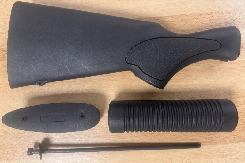 Versteigert wird ein gebrauchter original Remington Schaftsatz einer Remington 870 Tactical. Dies beinhaltet auch die Schrauben.