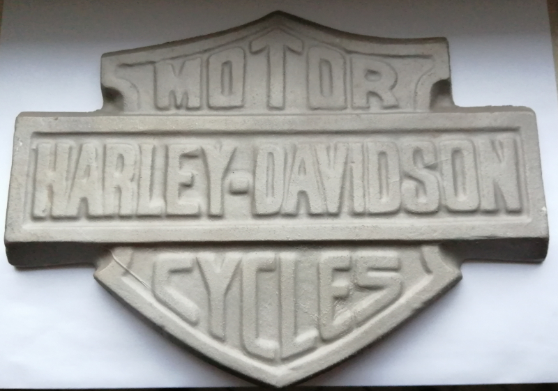 Emblem mit Motor Cycles Harley Davidson, Handmade, ich bin der Meinung es ist aus Aluminium aber darauf keine Gewähr, Gewicht knapp über 1,5 Kilogramm, Rest siehe Fotos, mit Oberflächen Spuren.