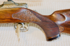 Brünierung 99%, Felder und Züge sind scharf, Schaftholz mit Verschneidungen und edler Gravur auf der Waffe,