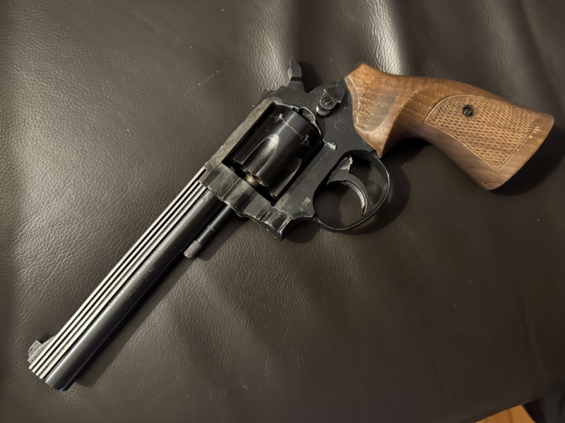 Hallo, ich biete hier den in der Titelbeschreibung genannten Schreckschussrevolver an. Frühe PTB-Nr. 213 ohne erkennbare Laufsperre, Lauf in 6 Zoll. Technisch einwandfrei, aufgrund des Alters und der Verwendung mit normalen und üblichen Gebrauchsspuren. Die Griff sind aufgrund eines Defektes der alten Schalen getauscht und nicht original. Sie bieten hier auf ein äußerst seltenes Exemplar von höchster Qualität und Verarbeitung.