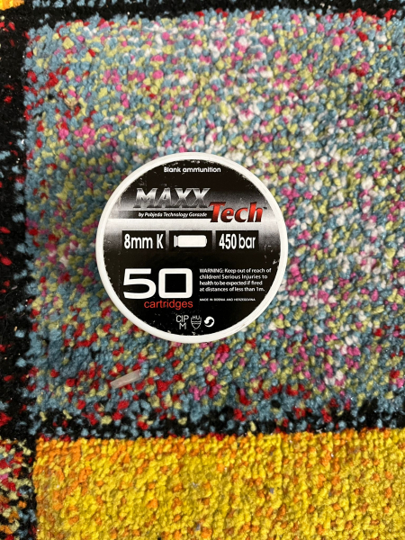 Zum Verkauf steht je Sofortkauf eine Packung 8mm Platzpatronen der Marke MaxxTech für Schreckschuss Waffen.