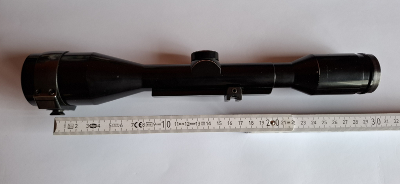 Die vorhandenen Montageteile EAW Ring vorne und Hinterfuß - Oberteil (Support)hinten, gehören dazu. Absehen ist ohne Fransen. Der Okulargummi fehlt.