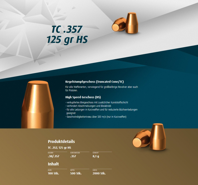 H&N Geschosse .357 HP HS 125gr. 500St.