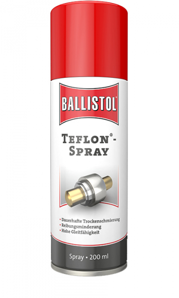 BALLISTOL Teflon™ Spray ist silikon-, säure- und harzfrei bzw. verharzt nicht.