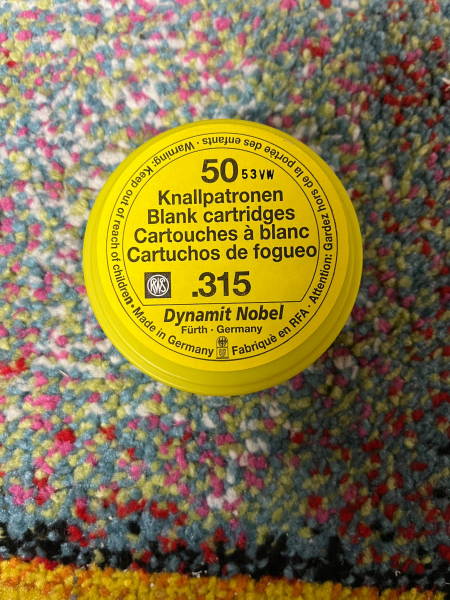 Zum Verkauf steht eine Packung .315 K Platzpatronen der Marke RWS für Schreckschuss Waffen.