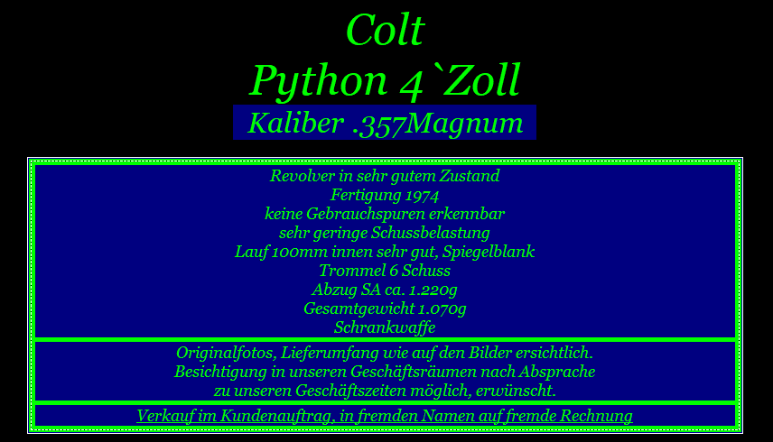 COLT Revolver Python Bj. 1974 mit 4" Lauf Kaliber .357 Magnum