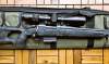 Bergara BA 14 Repetierbüchse , mit 5/8 x 24 Laufgewinde sowie Daumenlochschaft runden das Bild der Büchse ab.
