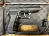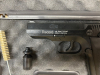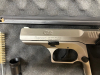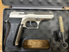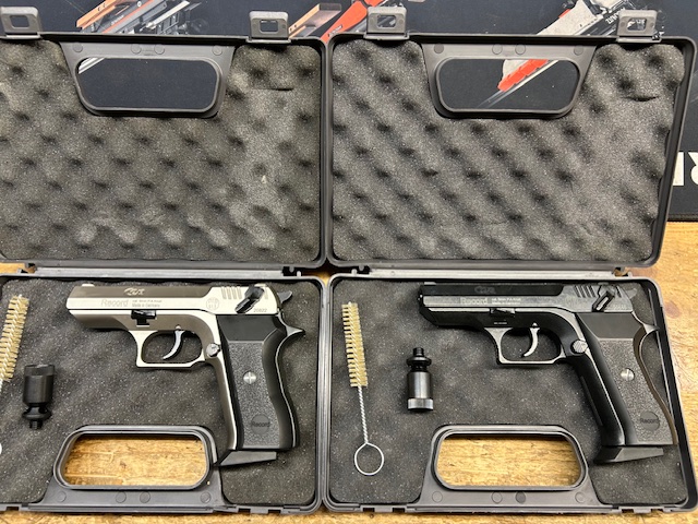 Record Schreckschußpistolen vom Sammler, Mod. COP, silber, schwarz, die Schwarze ist umgeschossen, die Silberne hat 10 Schuß abgefeuert, beide im Koffer, Plastik hat Sprünge, -----------schönes Pärchen für Sammler-------------