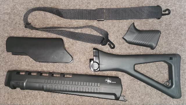 SIG 550 / PE90 Schaftset schwarz mit Gewehrriemen schwarz.
