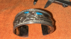 Dieser Armreif ist im getragenen Zustand und besitzt zwei kleine blaue Steine. Leider kann ich die Punze mit meinem Fotoapparat nicht gut wiedergeben.