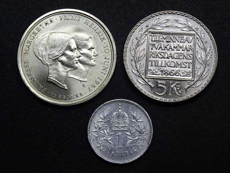 Münzen Silber Kronen Österreich, Dänemark, Schweden