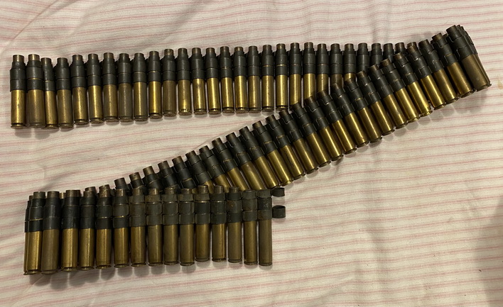 1x Gurtstueck fuers MG Browning CAL 30 M1919 und Varianten Gurtglied Typ M1 Huelsen nach WWII gefertigd Keine Ruecknahme Versand nach Deutschland Euro 5