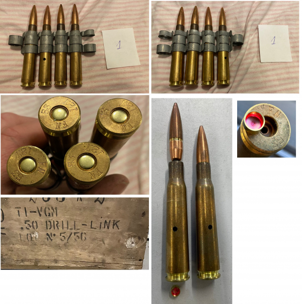 1x Gurtstueck mit 4x Patronen 12,7 mm x 99 DRILL und 5x Gurtglied Typ M1