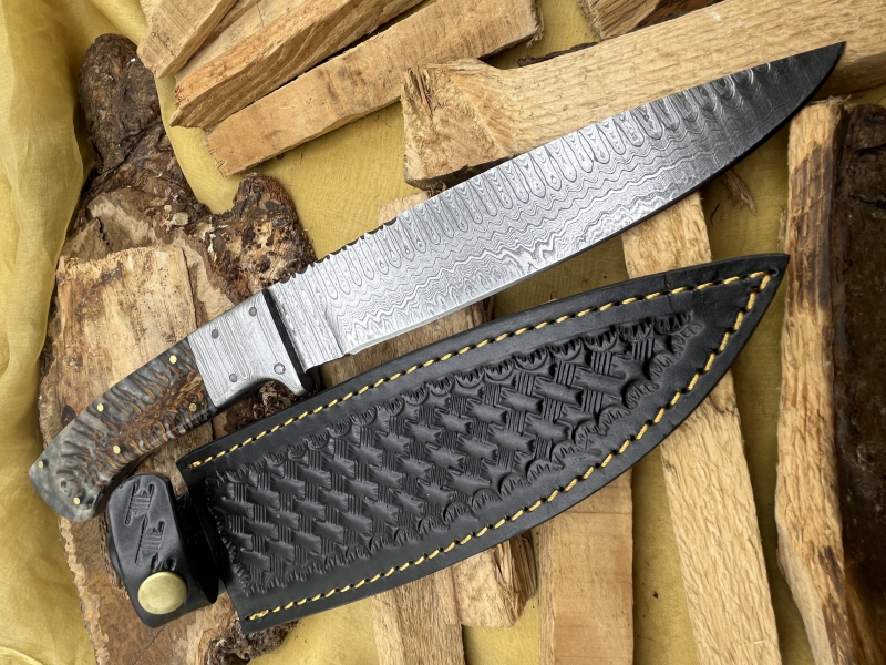 • Typ: Bowie-Messer aus echtem, mehrlagigem Damaststahl (über 200 Lagen)