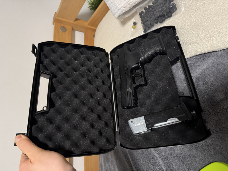 wurde vor circa vier Monaten gekauft und nur einmal getestet. Der Test hat in der eigenen Wohnung stattgefunden. Im Prinzip komplett neu. Rechnung etc. vorhanden. Zubehör wäre eine Tüte mit Gummikugeln und mindestens 15 Gas Kartuschen.