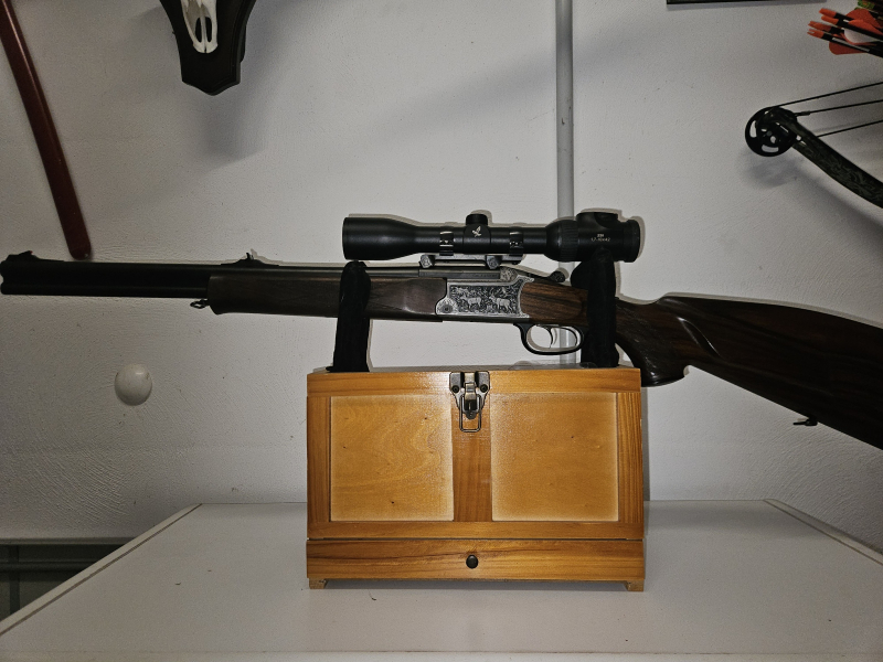 Ich verkaufe eine Blaser Bockdoppelbüchse im Kaliber 8x57irs. Die Waffe ist mit leichten Gebrauchsspuren angegeben, jedoch ist sie eigentlich ohne Kratzer, ohne Mängel. Die Schussleistung ist sehr gut. Insgesamt ist die Waffe wenig benutzt worden. Das Zielfernrohr ist nicht Bestandteil der Auktion und wird nicht veräußert. Allerdings die Henneberger Sattelmontage Teil der Auktion und im Auktionspreis enthalten.