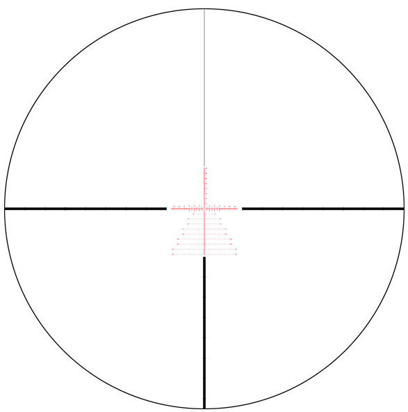 Vergrößerung wird aus dem einfachen Fadenkreuz ein komplexes taktisches MRAD Absehen für Höhen- und