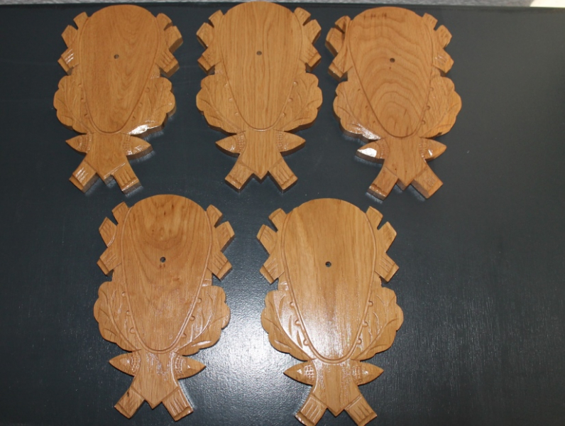 5 sehr schöne geschnitzte Trophäenbretter Reh Bock