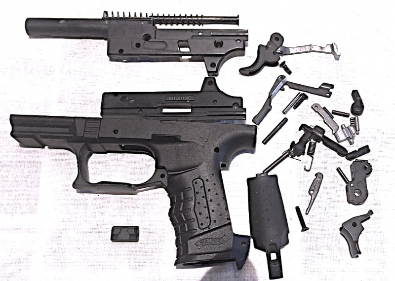 biete hier alle Teile für eine Walther P22 SRS Waffe Kal. 9mm PAK, es fehlt der Schlitten und das Magazin an.