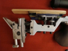 Der Alu-Schaft ist vielseitig verstellbar. Die Schaftbacke habe ich mit einer aufgeschraubten Leiste verlängert. Das Zielfernrohr ist ein Simalux Gold Edition. Die Handstütze ist 60 mm breit und eigentlich für den Stehendanschlag gedacht (umgedreht montiert).