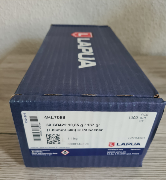 angeboten werden 1000 Stück Lapua .30cal (.308 Dia) Scenar OTM 167gr, HPBT, Lapua # GB 422, in ungeöffneter OVP, alles ein Los