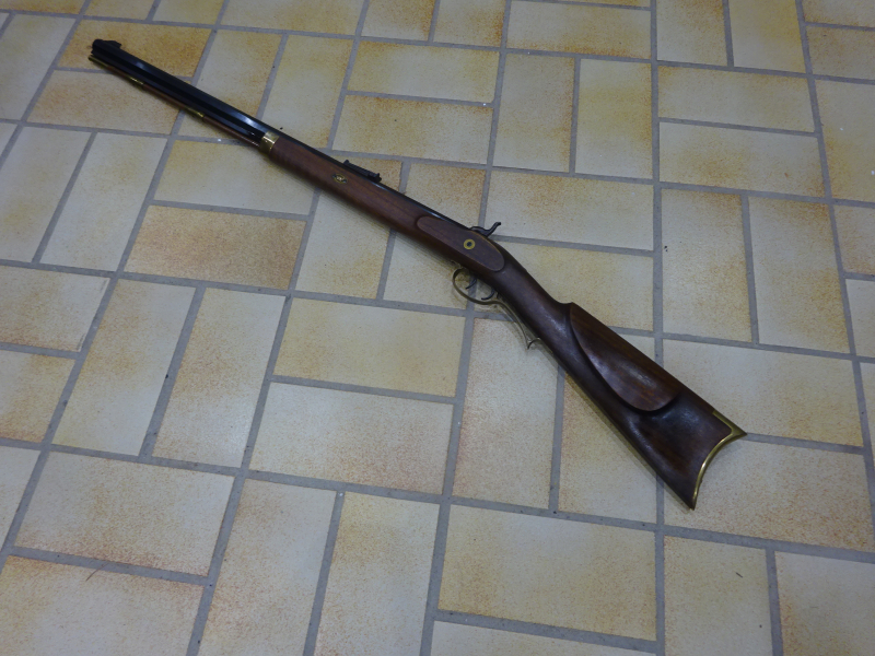 wenig gebrauchtes Perkussionsgewehr Hawken Target Rifle im Kal. 45, Hersteller Investarms Italien,dort auch näher beschrieben, mit Patchbox, Schwalbenschwanz-Visier und fein einstellbarem Stecher, Neupreis derzeit bei Artax 844 Euro! im Auftrag eines Schützenkollegen zu verkaufen