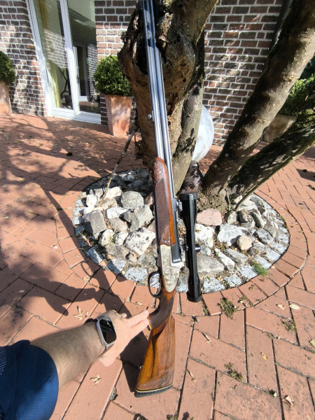 Tolles Schaftholz mit Kaisergriff sehr wertig und schön verziert und die langen Seitenplatten sind auch sehr wertig von Hand graviert!