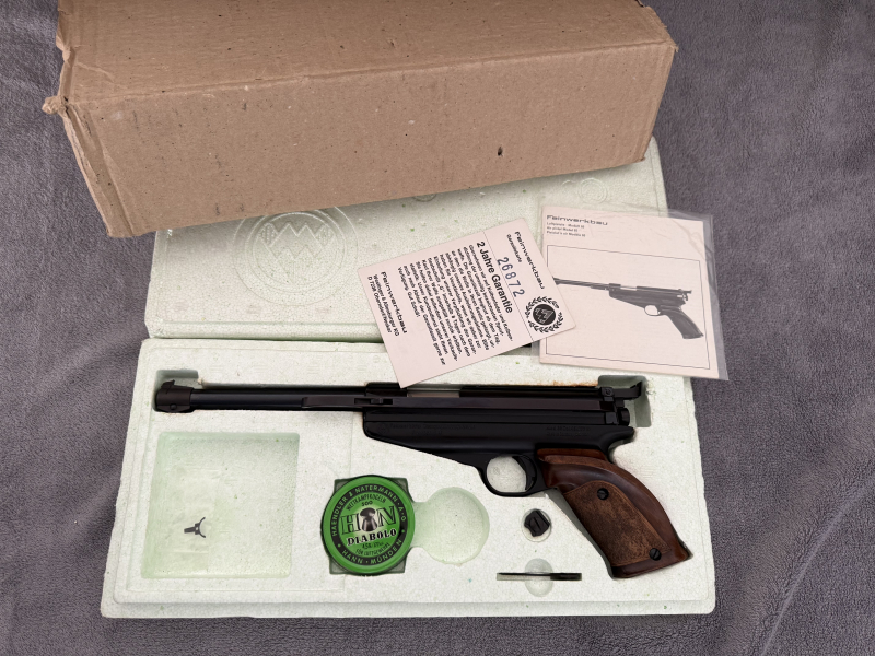 Die Feinwerkbau Mod. 65 wird in der originalen Verpackung, mit der originalen und nummerngleichen Bedienungsanleitung geliefert.