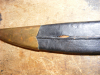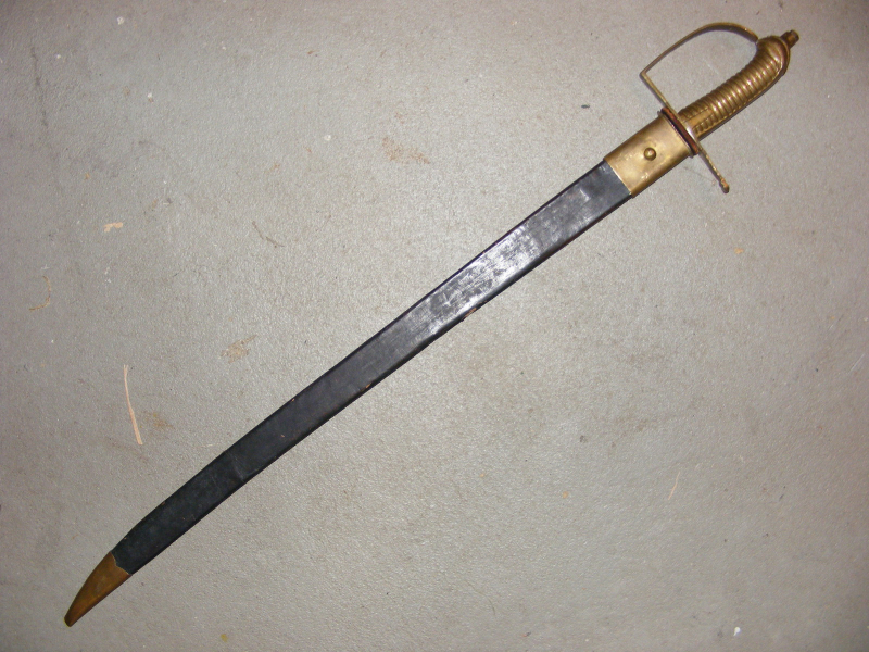 Kurzer Säbel , Länge ca. 77 cm. Messinggriff, Lederscheide mit Messingbeschlägen, leichte Beschädigungen (siehe Bilder)