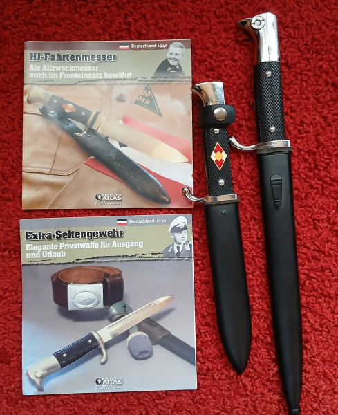 2 Messer (Nachbauten) aus der Atlas Edition. Alle Messer sind ab Werk ungeschliffen/stumpf.