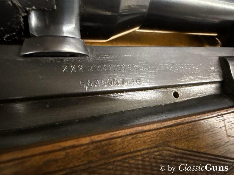 Gesamtlänge 1.075 mm, Schaftlänge 360 mm, Gewicht ohne Zielfernrohr 3,2 kg. Deutscher CIP-Beschuss 1969, S/N 13521.
