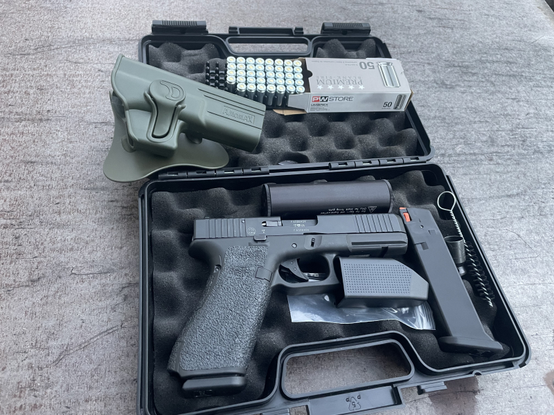 Ich biete hier meine fast neue Glock 17 Gen5. Inkl. Schalldämpfer Ersatzmagazin und einem passenden Paddle Holster. Eine angefangene Packung Munition gebe ich ebenfalls dazu. Die Waffe hat wenn es hoch kommt 20. Schuss gemacht.