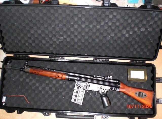so nicht mehr zubekommen es sind und es passen viele original teile dran die org.teile in dem abgebildeten kasten sind bei ABHOLUNG dabei sowie der sehr stabile koffer und die org. verpackung es kann sogar das echte magazin eingeführt werden alles wie auf den bildern eine ausführliche beschreibung gibt es bei kotte bestnr.49034 die ZF aufname entspricht dem orig. und ist abnembar keine garantie keine rükname