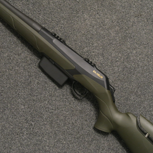 Angeboten wird eine Repetierbüchse Merkel Mod. RX Helix "Alpinist" Kal. 30-06. Grüner Kunststoffschaft mit verstellbarer Backe. Schaftlänge 37cm, Lauflänge 56cm. Mündungsgewinde M15x1.