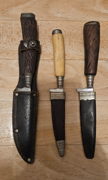 Hallo liebe Eguner, zum Verkauf stehen drei schöne Jagdmesser, welche ebenfalls aus dem Nachlass des Vaters einer guten Freundin stammen. Alle drei vefügen über eine Scheide und sind in gutem Zustand. Schaut auch in meine anderen Auktionen!