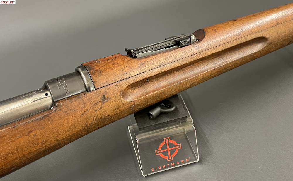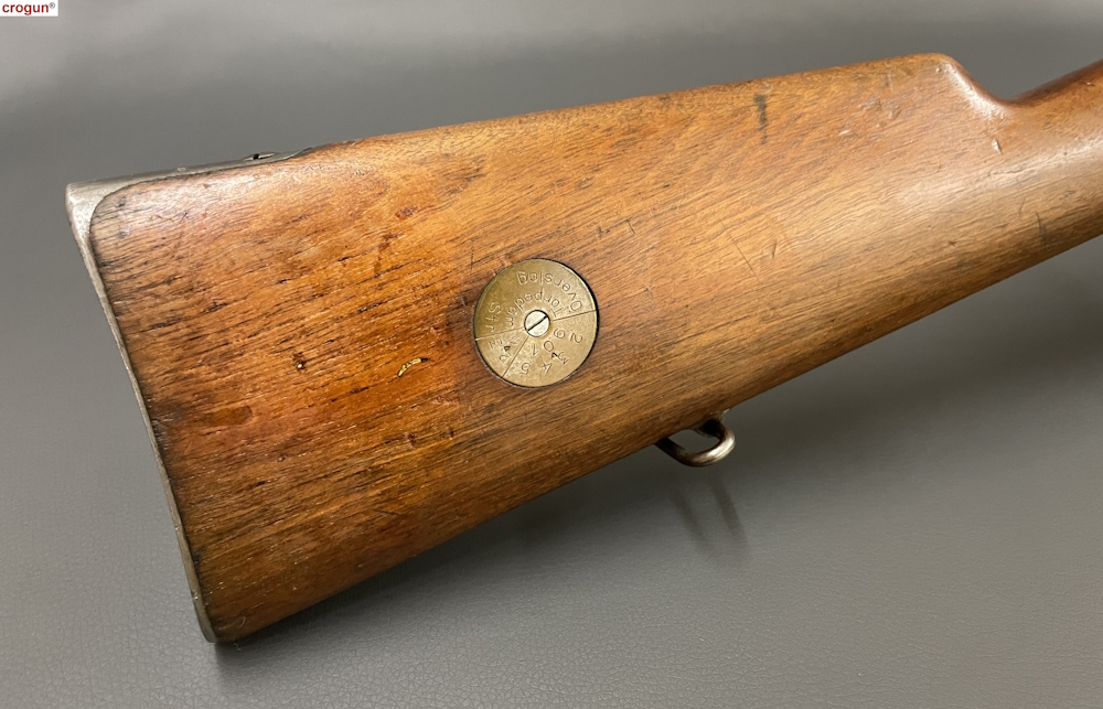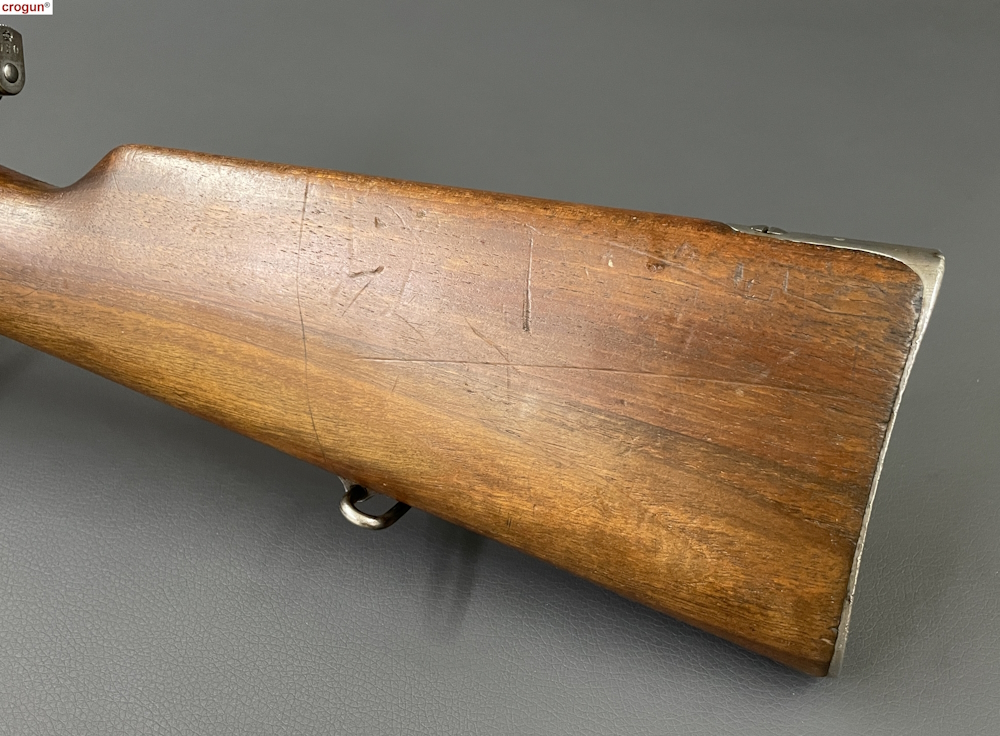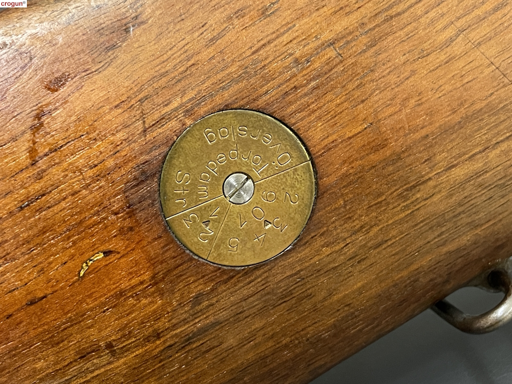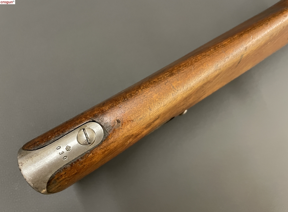 Schaft: Nussbaum geölt mit Riemenösen, Stahlschaftkappe und Putzstock