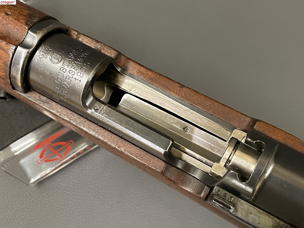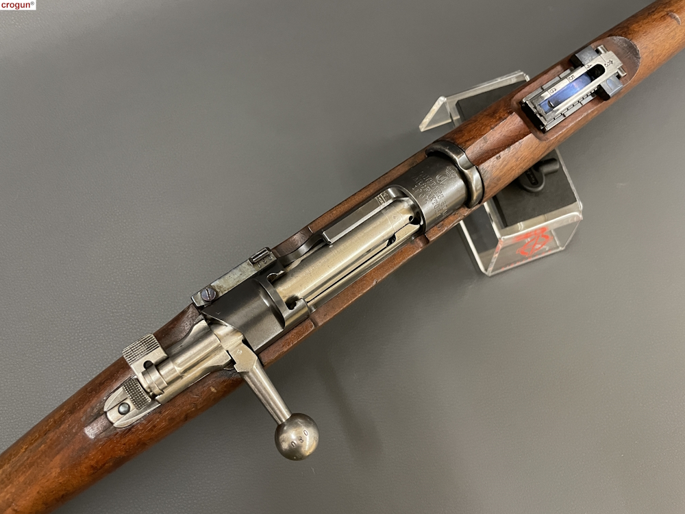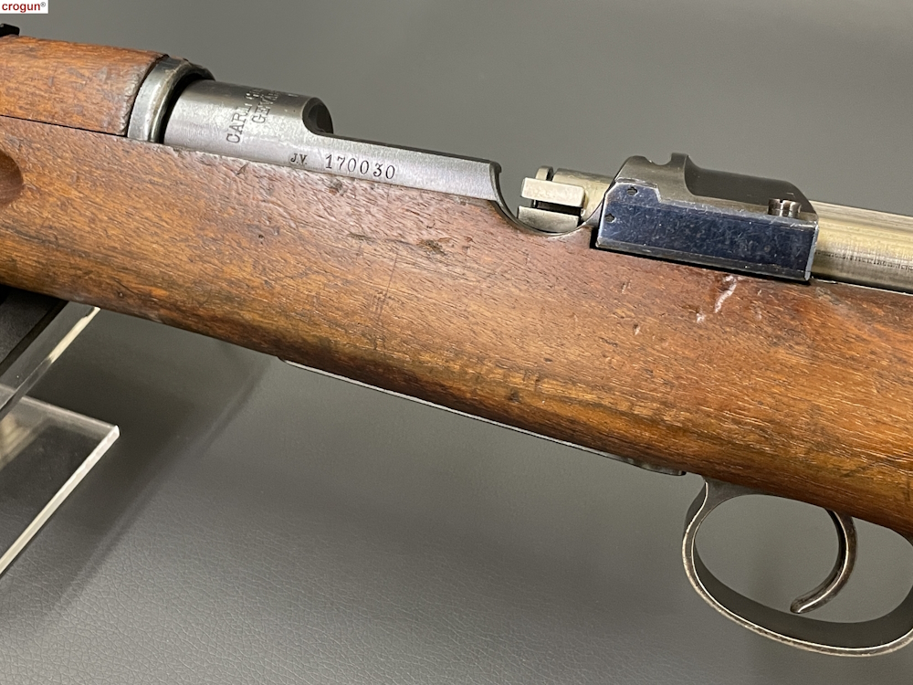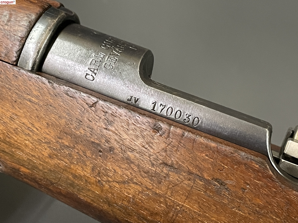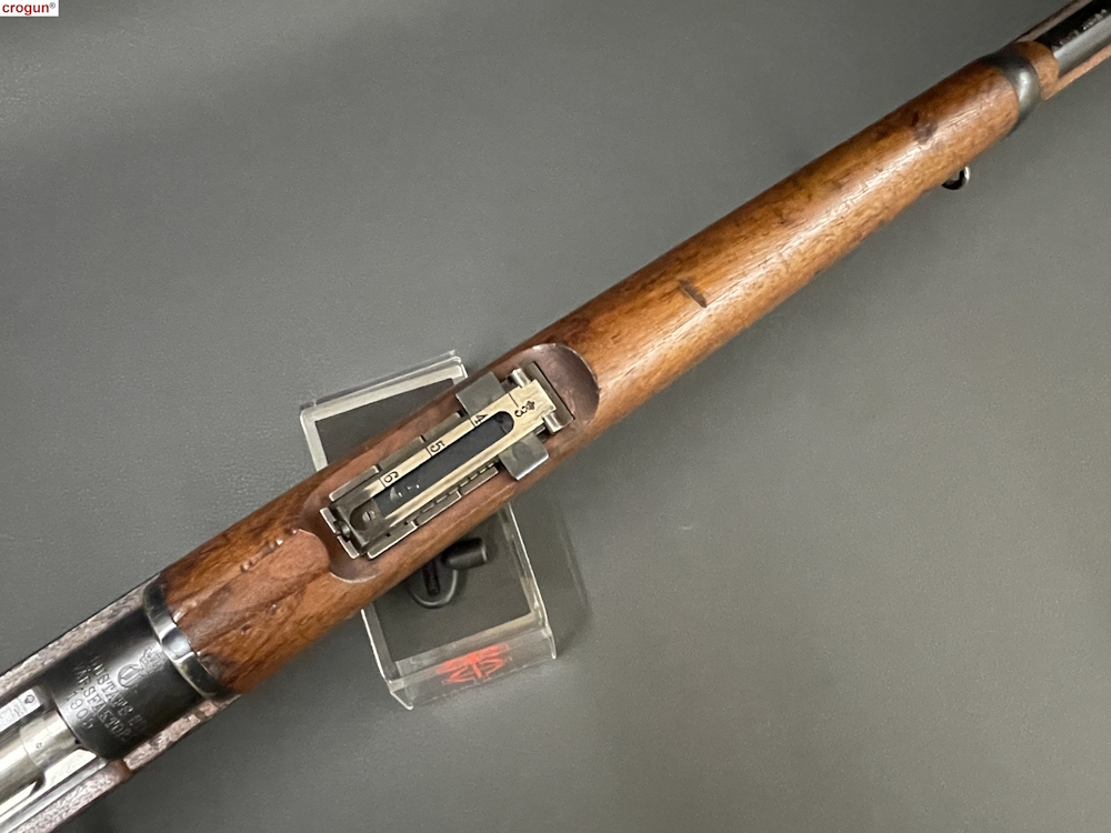 Schaft: Nussbaum geölt mit Riemenösen, Stahlschaftkappe und Putzstock