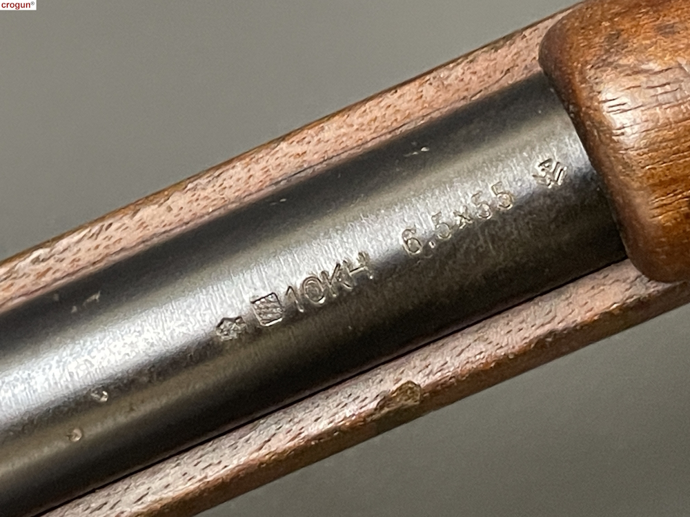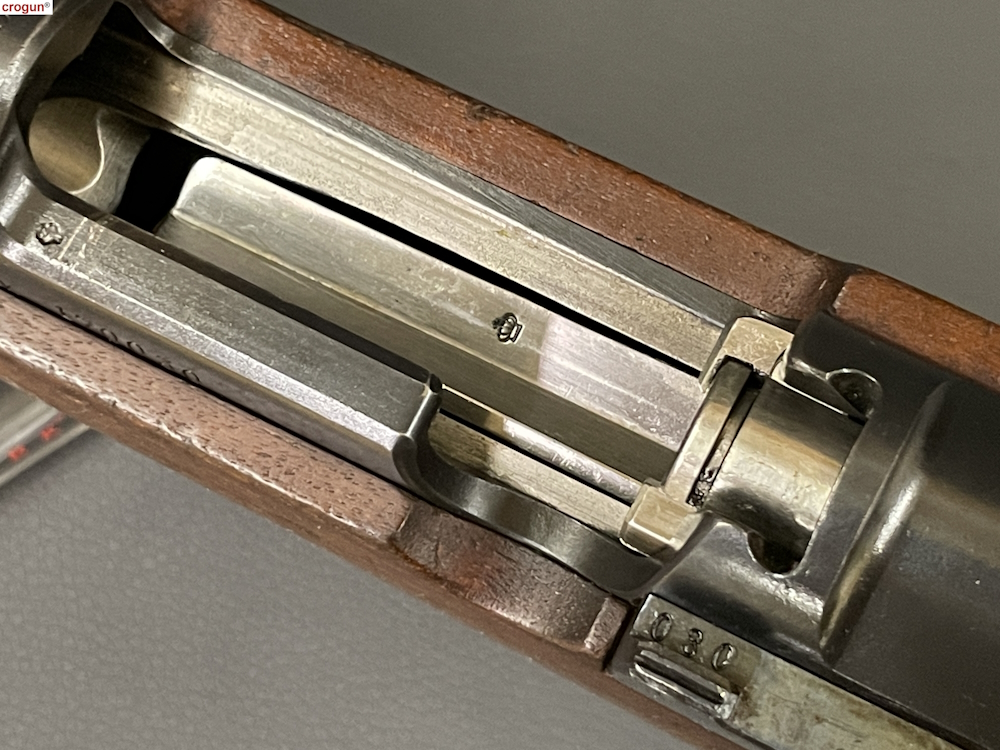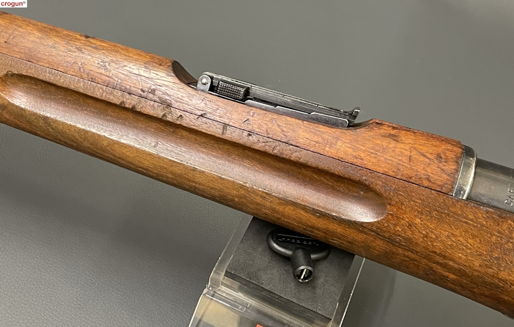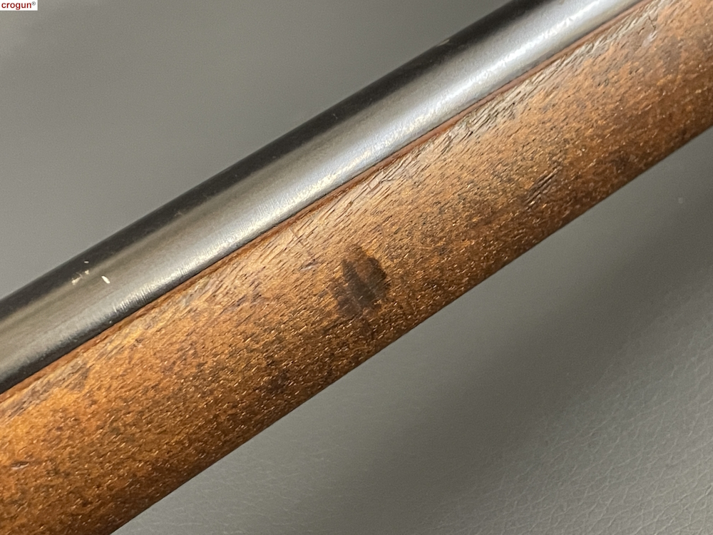 Diverse Gebrauchs-/Lagerspuren, Druckstellen bzw. Kratzer im Schaftholz, Brünierung partiell berieben, keine Korrosion!