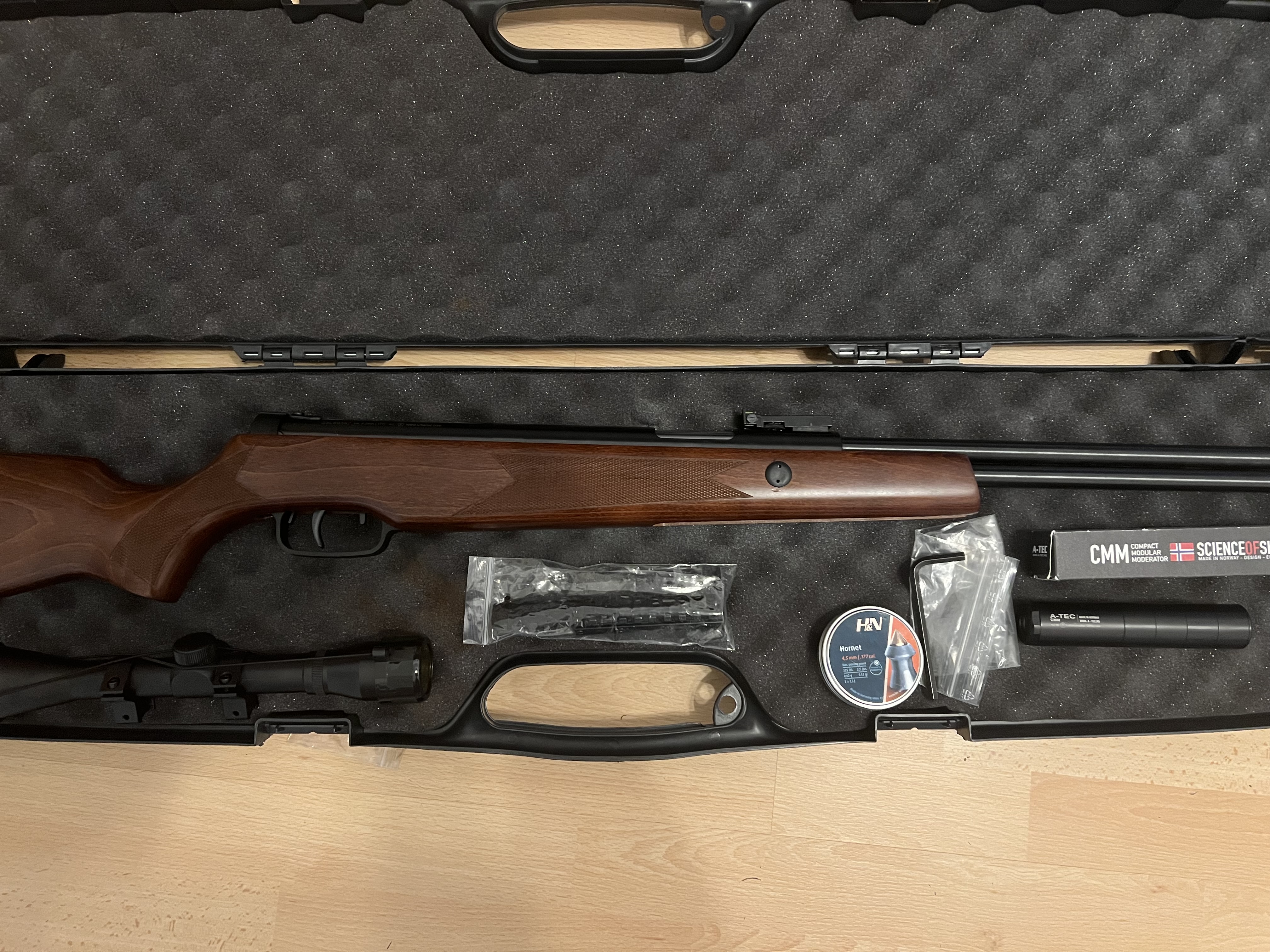 im Rahmen einer einmaligen Sammlungsauflösung erhalten Sie die Gelegenheit, eine Hämmerli Hunter Force 900 mit Zielfernrohr und einem modularen Schalldämpfer von A-Tec (für Luftdruckwaffen) im Kaliber 4,5mm zu ersteigern. Der Hochwertige Hartschalenkoffer ist ebenfalls Bestandteil dieser Auktion. Das Gewehr und der Schalldämpfer wurden in Deutschland erworben, sind mit einem F-Symbol gekennzeichnet und frei ab 18 Jahren erwerbbar.