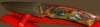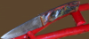 Die handschmeichelnde, weiche Oberfläche des Griffs, erstrahlt in Oliv-/ Rottönen, sowei in dunkelgrau-hellgrauen Farbverläufen.