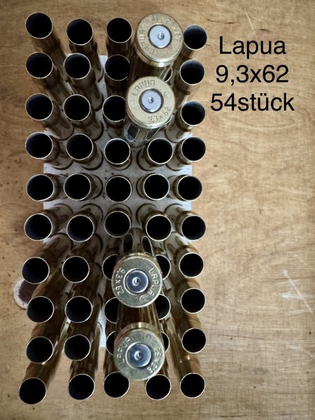 Ich biete hier 54 Hülsen von Lapua im Kaliber 9,3x62 an. Sie sind 1x abgeschossen und wurden im trocken Tumbler gereinigt.