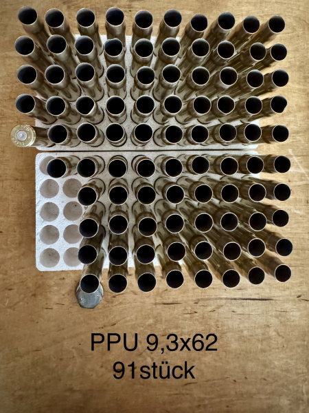 Ich biete hier 91 Hülsen von PPU im Kaliber 9,3x62 an. Sie sind 1x abgeschossen und wurden im trocken Tumbler gereinigt.