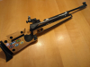 Anschütz Super Air 2002! Bewährtes System, ohne die bekannten Probleme des 2001. Meisterschaftsaufkleber können auf Wunsch entfernt werden. Schussleistung sehr gut (siehe fünf Schussbild). Visierlinienerhöhung, Bedienungsanleitung, Original Versandkarton. Kein Druckverlust!