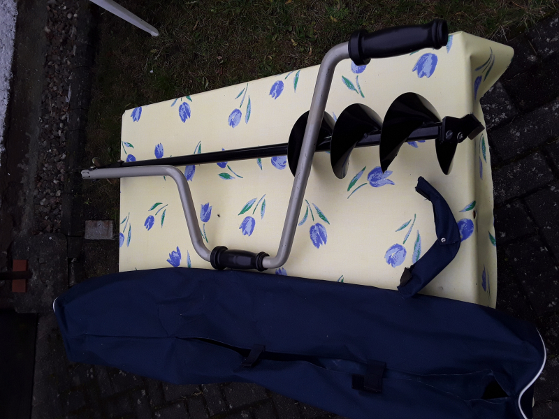 Verkaufe einen Eisbohrer mit Tasche und Messerschutz.Messer sehr scharf,130 mm .Der Bohrer kann auch für Erdlöcher für Zaunpfähle benutzt werden.
