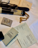 Konvolut beinhaltet Originale aus der Verwendung in der DVP der DDR: 1.Schlagstock Hartgummi Länge 48 cm; 2. Reguliererstab blinkend (ohne Batt.); 3. Handfessel m. Schlüssel u. Inv.Nr.; 4. Führungskette; 5. Kastenschloß f. Lederkoppel; 6. 3x Platzpatronendüse (für AK47 u. LMG K); 7. 2x RG 57 (Ausf. f. Kal. 7,62 / Ausf. f. Kal. 5,45) m. Ölkissen W 22; 8. 3x Blanko-Vordrucke (Ka31 - Urlaubsschein / VD/W52 - Sprengmittelerlaubnis MdI - 1x gummiert mit Registrier-Nr.).