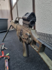 Der Markierer ist bestückz mit Hauptkampfvisier und Zweibeinstütze vom H&K G36 bzw HK243. Lässt sich also auch auf eine SL8 etc montieren.