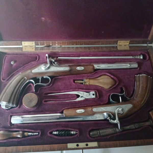 Es handelt sich bei den Vorderlader Pistolen um einen historischen Nachbau, sie stammen also nicht aus der Originalzeit.