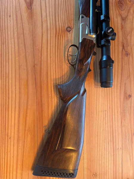 Hallo ! Ich verkaufe hier mein DBD der Marke Krieghoff Otima in dem Kaliber 2x9,3x74r und 1x Schrotlauf 20/76 inkl Montage und Meota ZF MEOSTAR 1-4x22RD mit LP! Die Waffe besitzt im vorderen Abzug einen Stecher und der vorder Abzug löst die beiden Kugelläufe aus ! Kein umgreifen mehr! Die Waffe verfügt natürlich über einen Spannhebel und wird erst vor dem Schuss gespannt was der Sicherheit sehr entgegen kommt. Solten nach den ersten 2 Schuß eine weitere Gruppe geschssen werden bleibt die Waffe gespannt bzw. spannt sich beim abkippen wieder automatisch neu ! Wird das 2te Paar nicht benötigt entspannt man die Waffe wieder und sie ist Save! Die Läufe sind zu einander verstellbar und 55cm lang was die Waffe extrem führig macht. Eine tolle Begleiderin aus Stahl und schönem Maserholz.