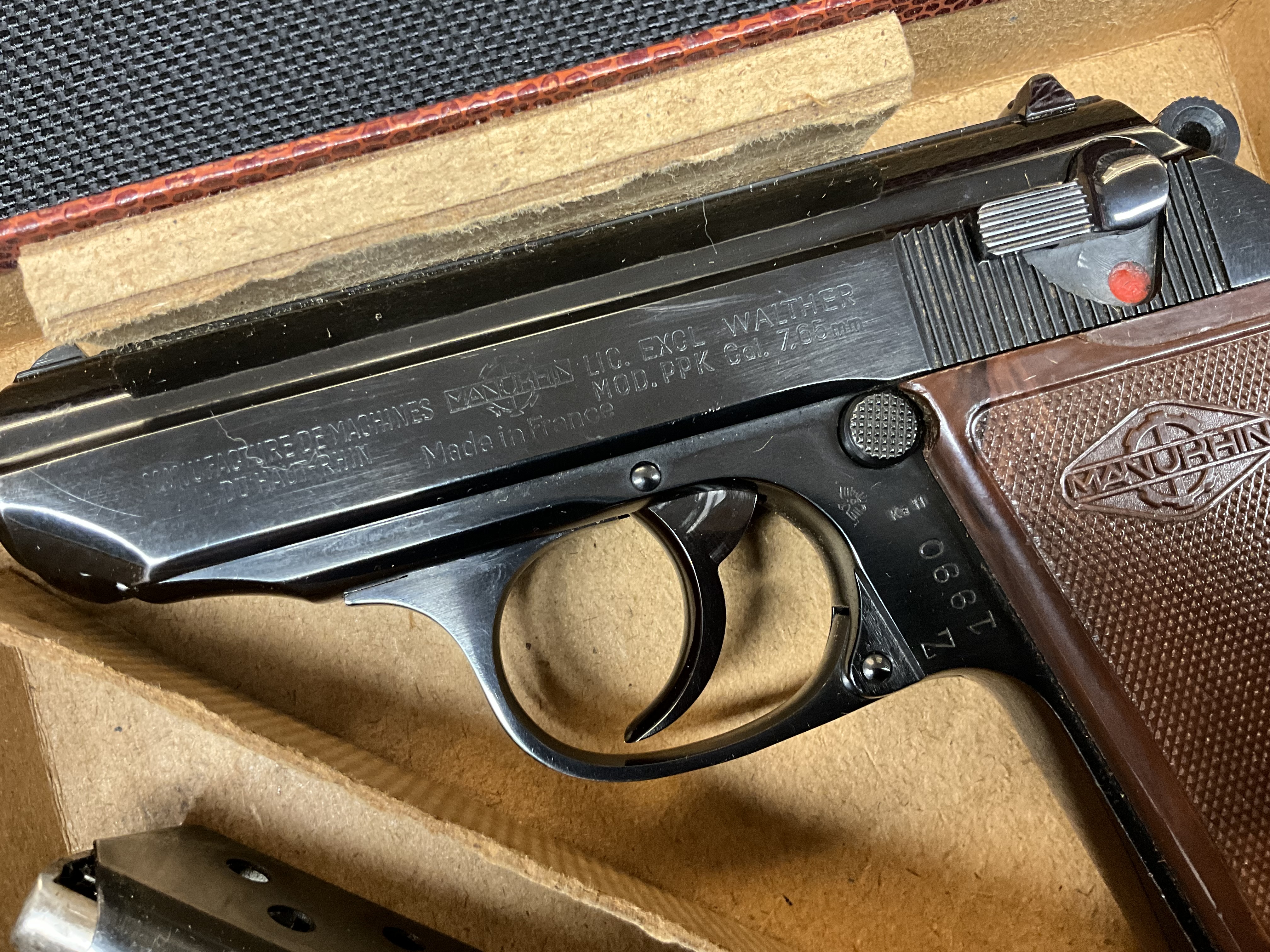 Waffe befindet sich in einem guten Zustand. Von der rechten Griffschale ist ein Stück abgebrochen. Waffe wird mit Ersatzmagazin im Originalkarton verschickt.